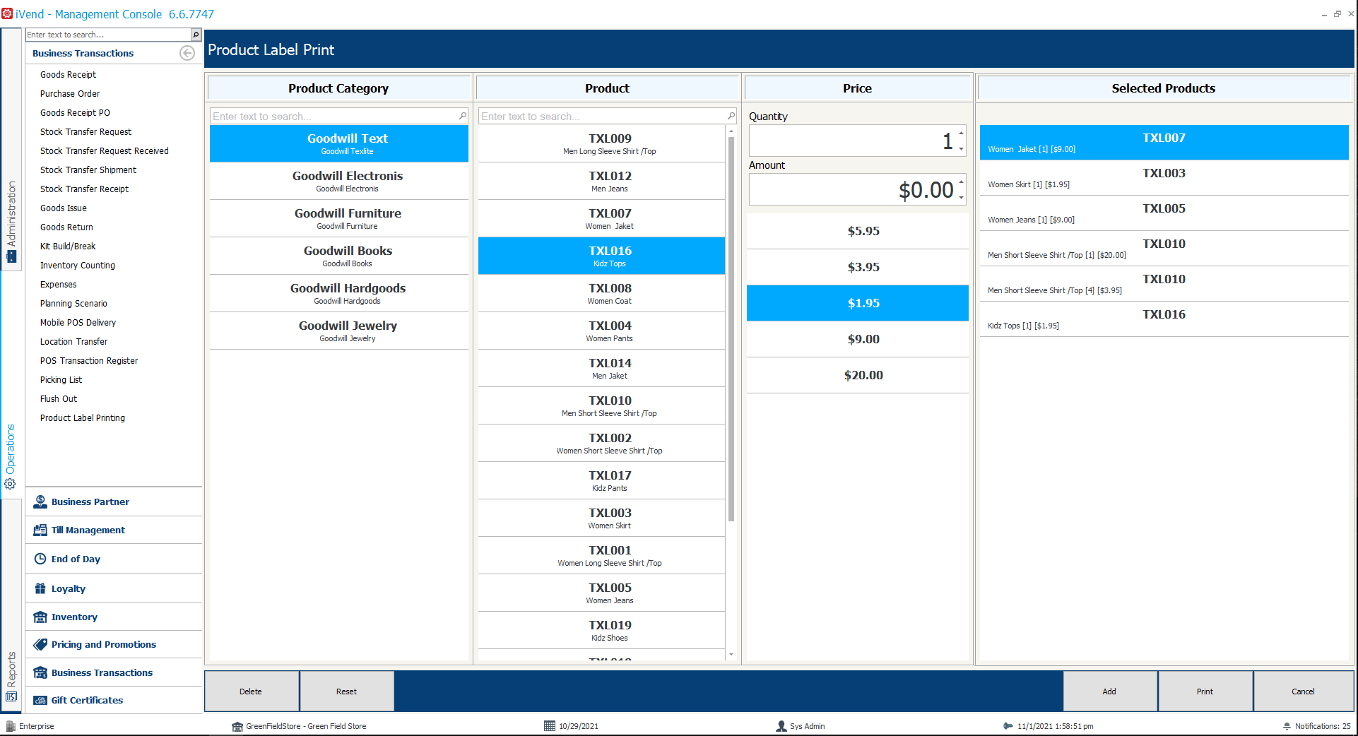 iVend Retail is a retail solution for Goodwill designed to enable business profitability, operational efficiency, and delivery of exceptional customer experiences, all with the flexibility to scale up or down as required. iVend Retail for Goodwill, a Software as a Service (SaaS) offering, is affordable and easy-to-use as Goodwill stores compete primarily on price with traditional retailers. A solution capable of managing high volume of transactions, supporting price labels and product pricing schemes as required by Goodwill organizations.